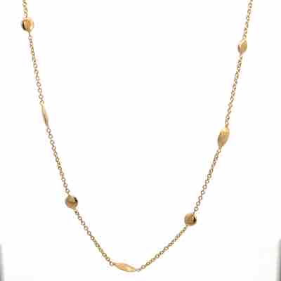 14K Yellow Gold Satin Oval High Polish Dots Stations 18"
