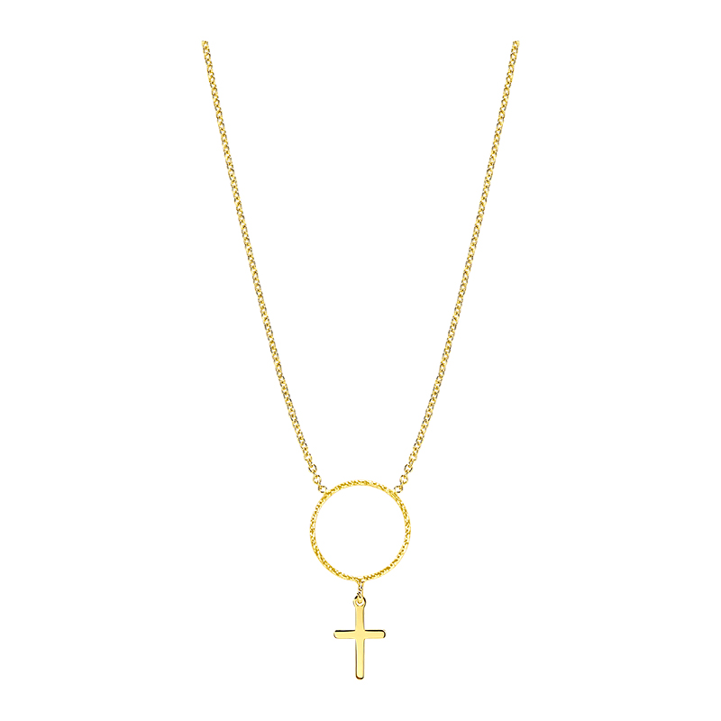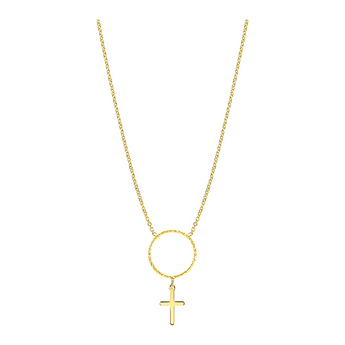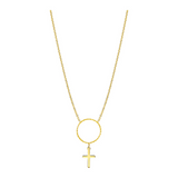 14K Yellow Gold Cable With Diamond Cut Open Circle And Cross Drop 16.5"