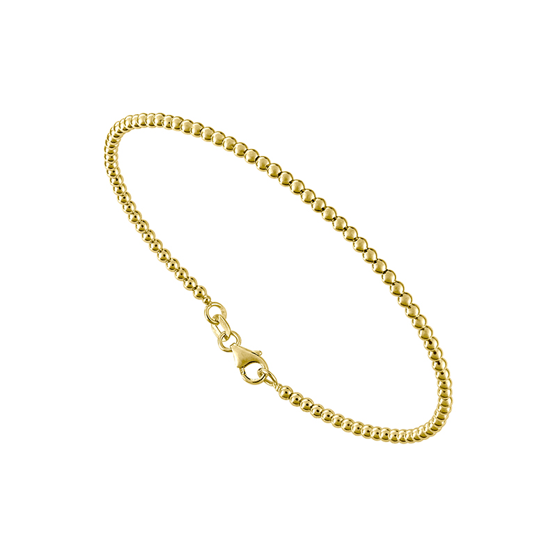 14K Yellow Gold 2mm High Polish Bead Cuff 7.5"