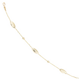 14K Yellow Gold Polished Oval And Bead Station Bracelet 7.5"