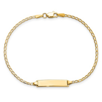 14K Yellow Gold Polished Solid Chain/Solid Plate Flat Curb Link, 19.5mm x 3.5mm Plate, 7 inch ID Bracelet