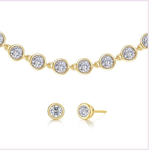 Holiday Gift Set With Sterling Silver Gold Plated 3.52Ctw Link Bezel Tennis Bracelet 7.25" #B0211CLG72 And Sterling Silver Gold Plated 0.34Ctw Bezel Minimal Embrace Studs #E0653CLG00