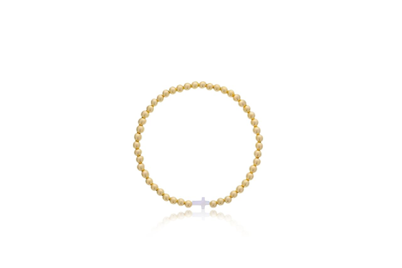 4mm Gold Filled Beads With Small Mother Of Pearl Cross Connector 5.5" Kids Bracelet