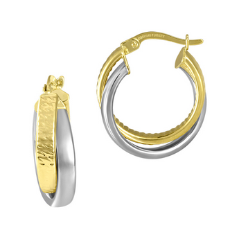 14K Two Toned Diamond Cut And High Polished Hoop Earrings