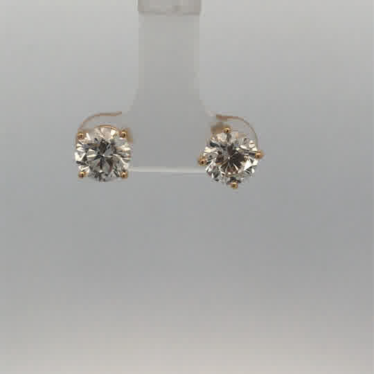 14K Yellow Gold 2.48Ct 2 RB 4 Prong Lab Grown Diamond Studs