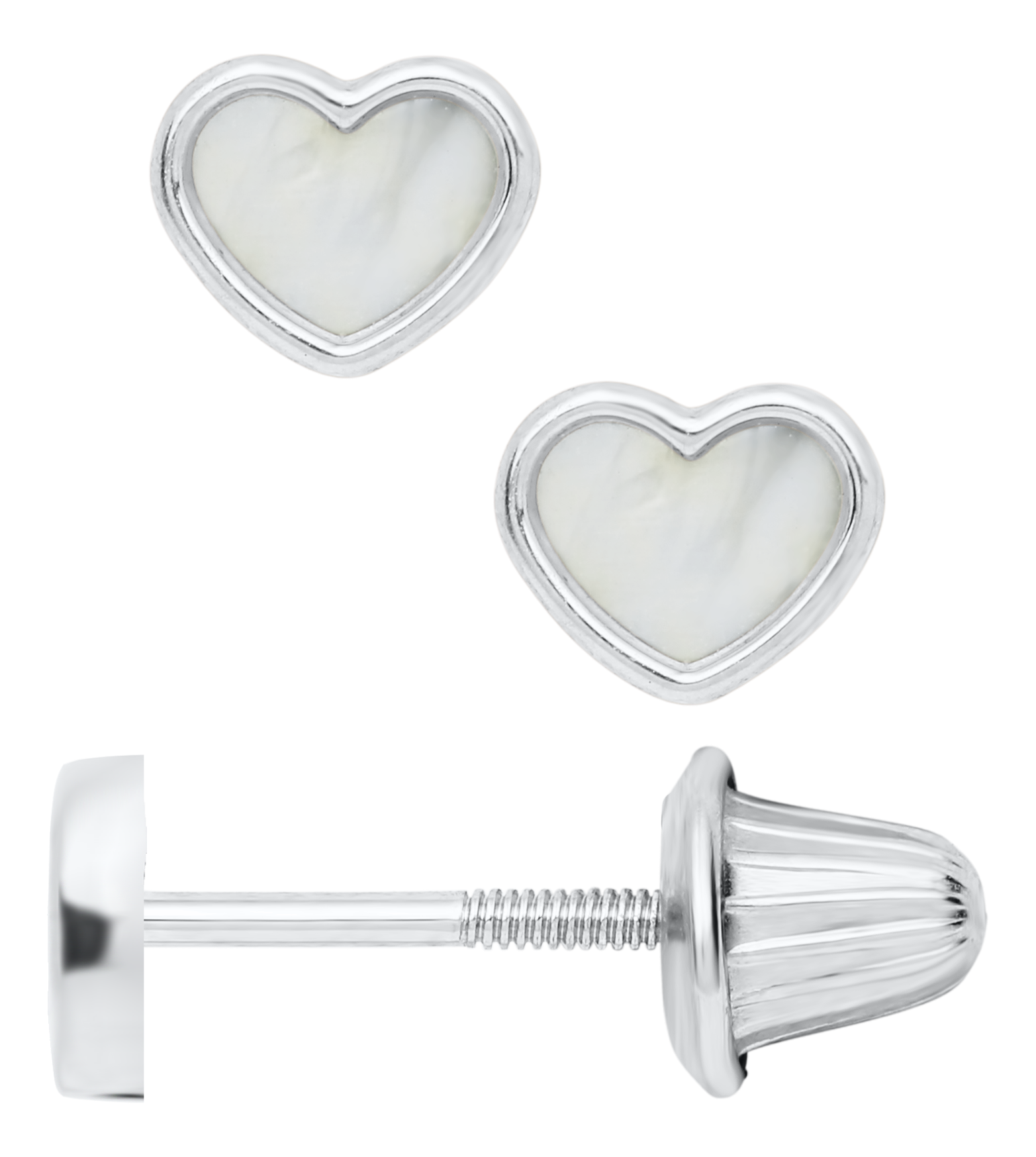 Sterling Silver Heart Earring With Mother Of Pearl Stone