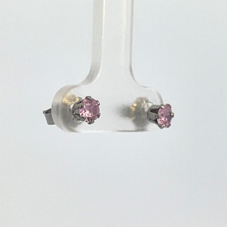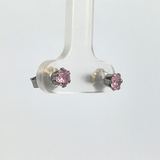Sterling Silver 4MM Pink CZ Stud Earrings