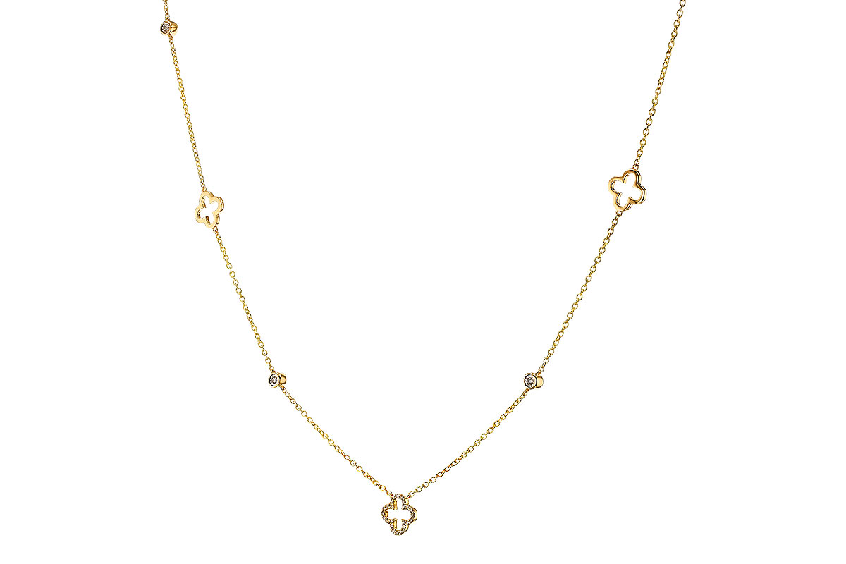 14kt Yellow Gold Four-Leaf and Stone Design Necklace