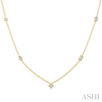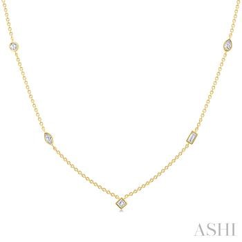 1/2 Ctw Bezel Set Mixed Cut Diamond Station Necklace in 14K Yellow Gold with Cable Chain 1.00 MM in 18 Inches with Lobster Lock & Extenders at 16" & 17" I - J Color, SI2 - I1 Clarity