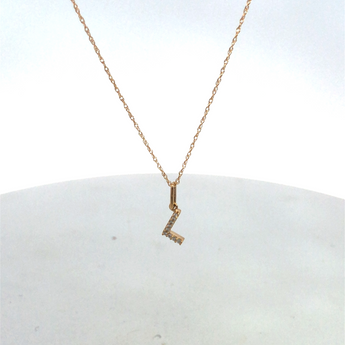 10K Yellow Gold Letter "L" Initial Pendant, 9 Diamonds (.04cttw, I Color, I1 Clarity) with 18" Light Rope Chain Spring and Tab