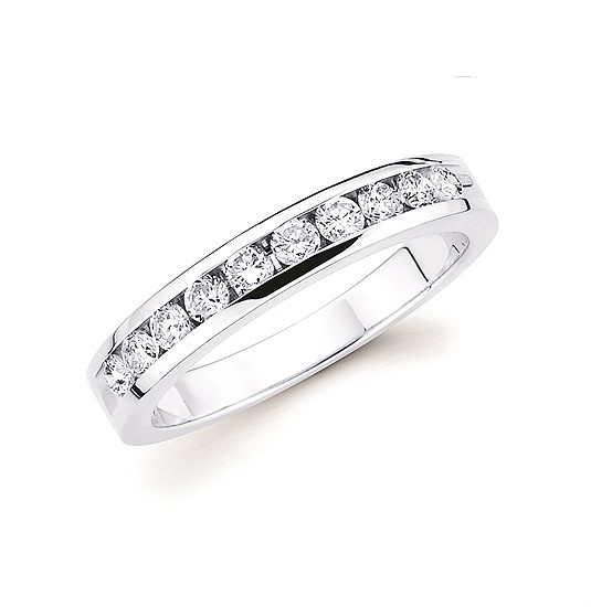 14K White Gold Channel Set 10 Stone Diamond Anniversary Band .50cttw (10 Round Natural Diamonds, I Color, I1-I2 Clarity)