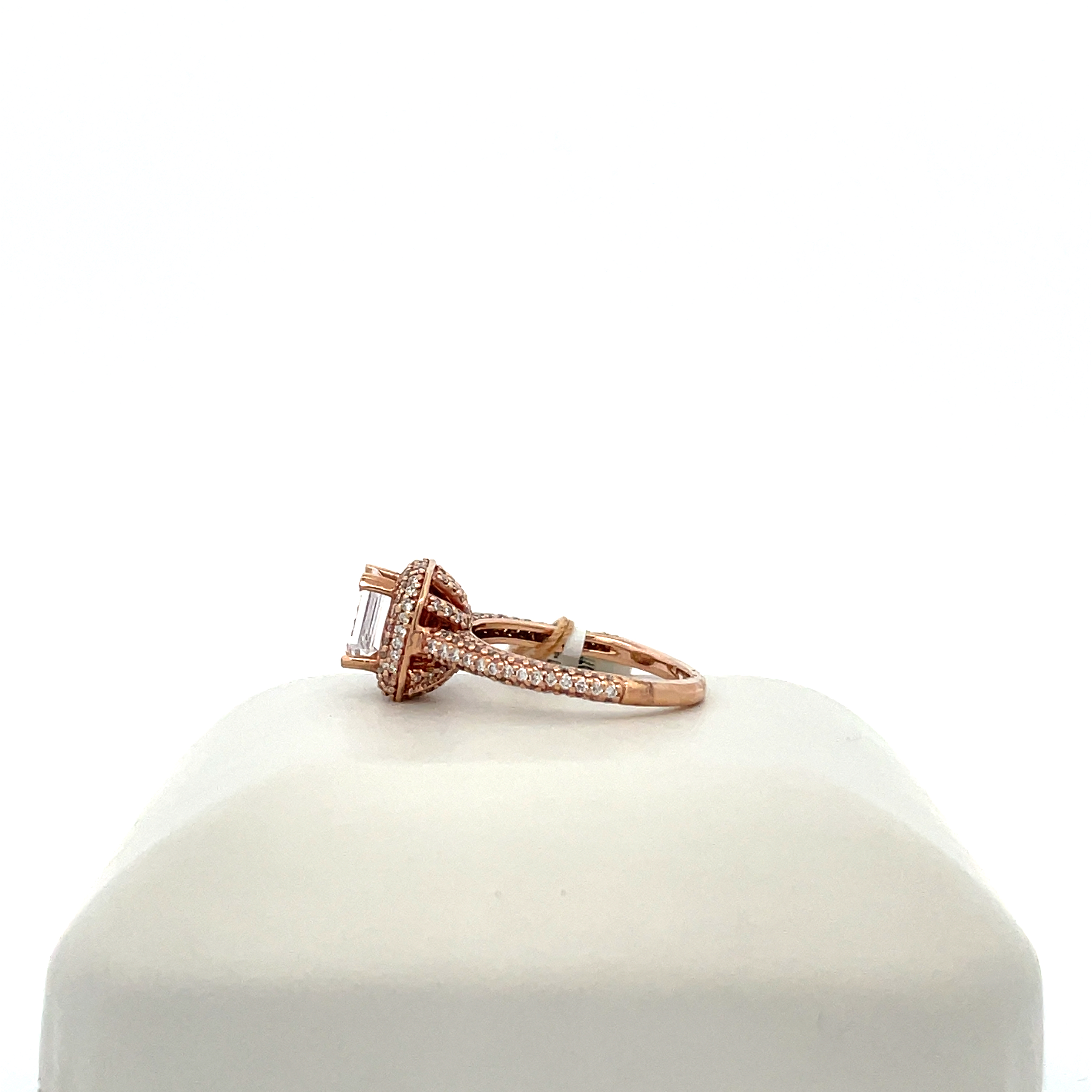 14k Rose Gold Engagement Ring with Cubic Zirconia Emerald Center
