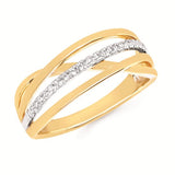 14K Two Tone Gold Criss Cross Diamond Ring, 0.11ctw, 21 Diamonds, I Color, I1 Clarity