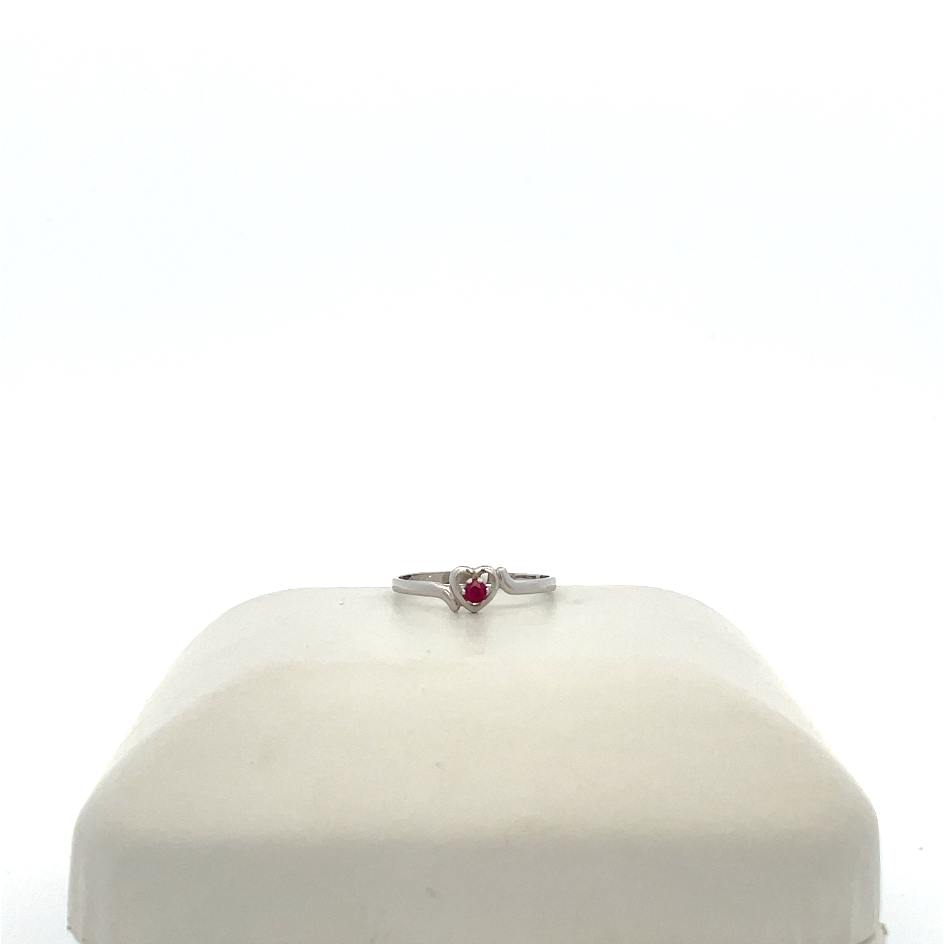 Kid's 14k White Gold Heart Birthstone Ring - July