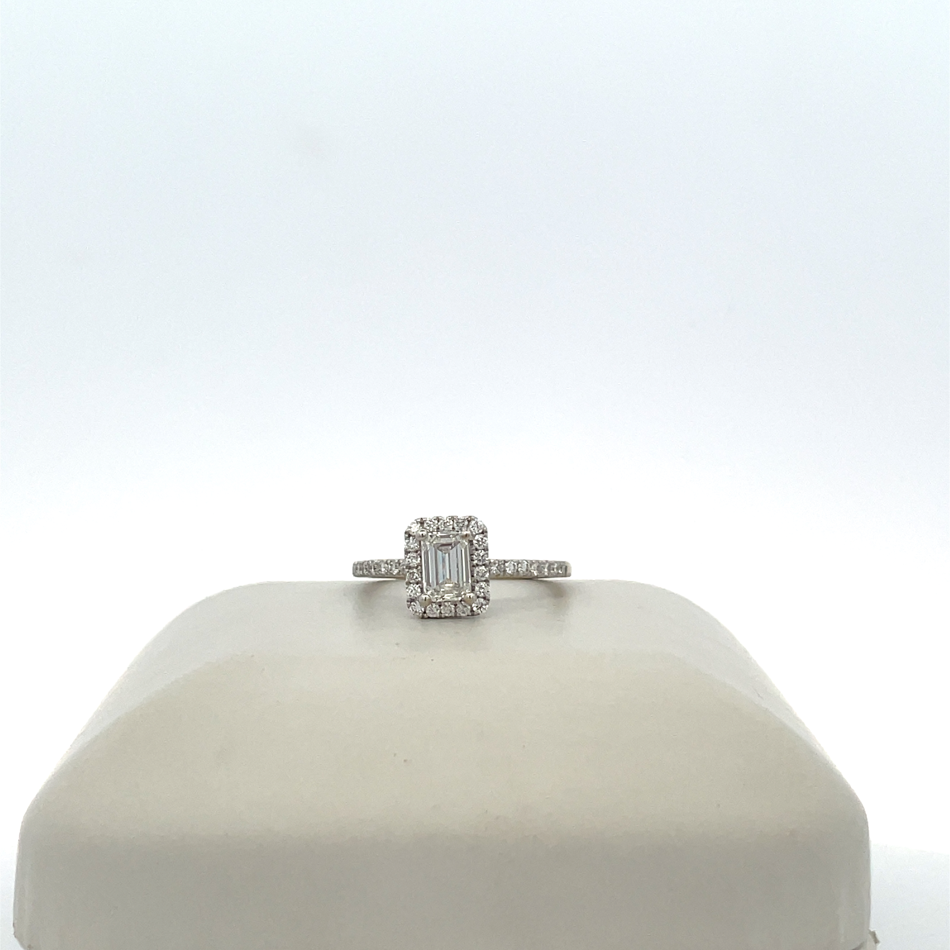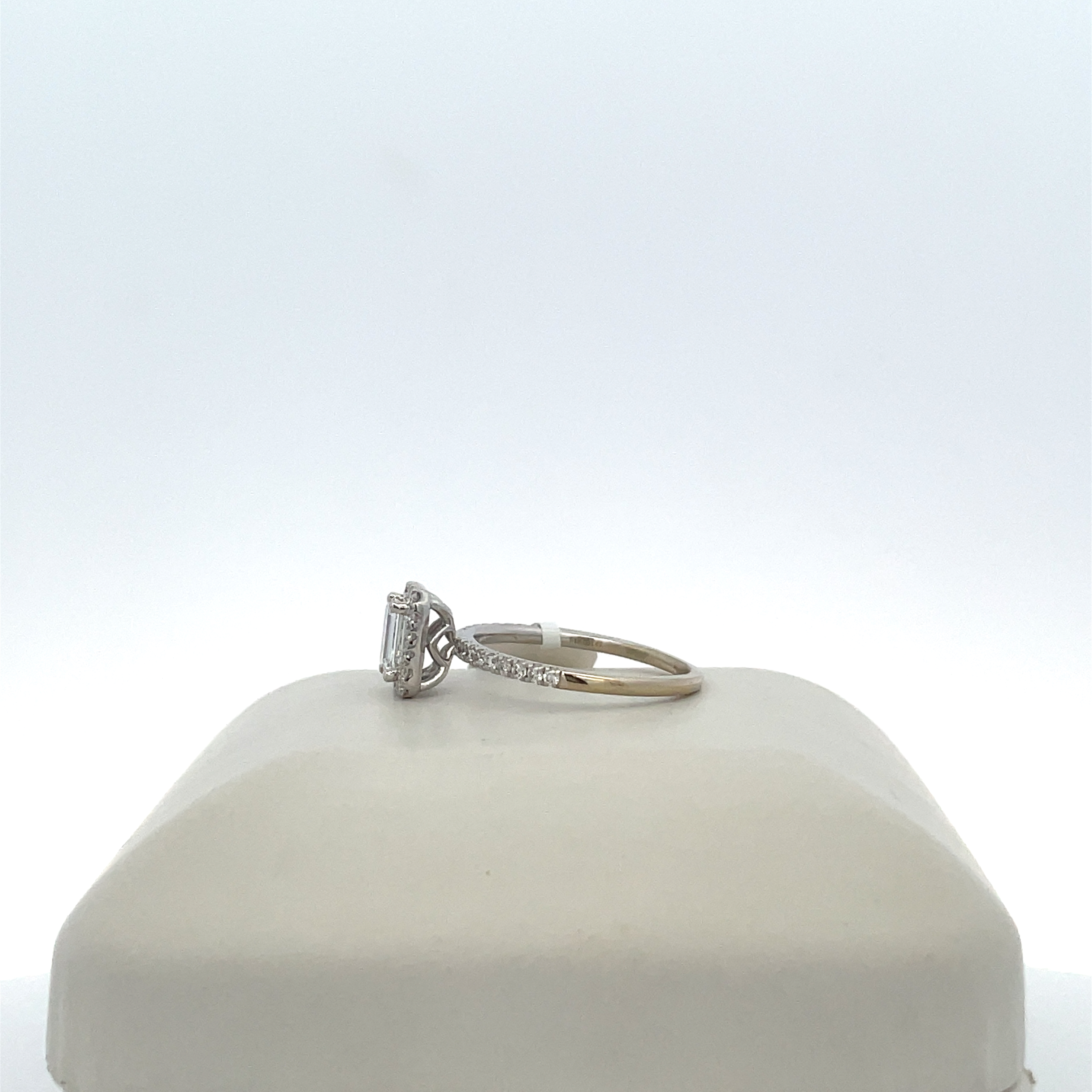 Lady's 14k White Gold Engagement Ring with Emerald Center and Halo - ECO-BRILLIANCE