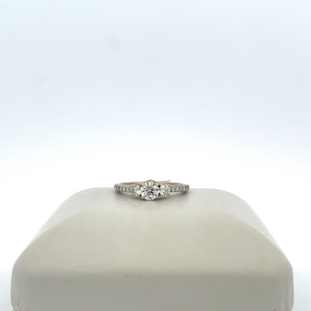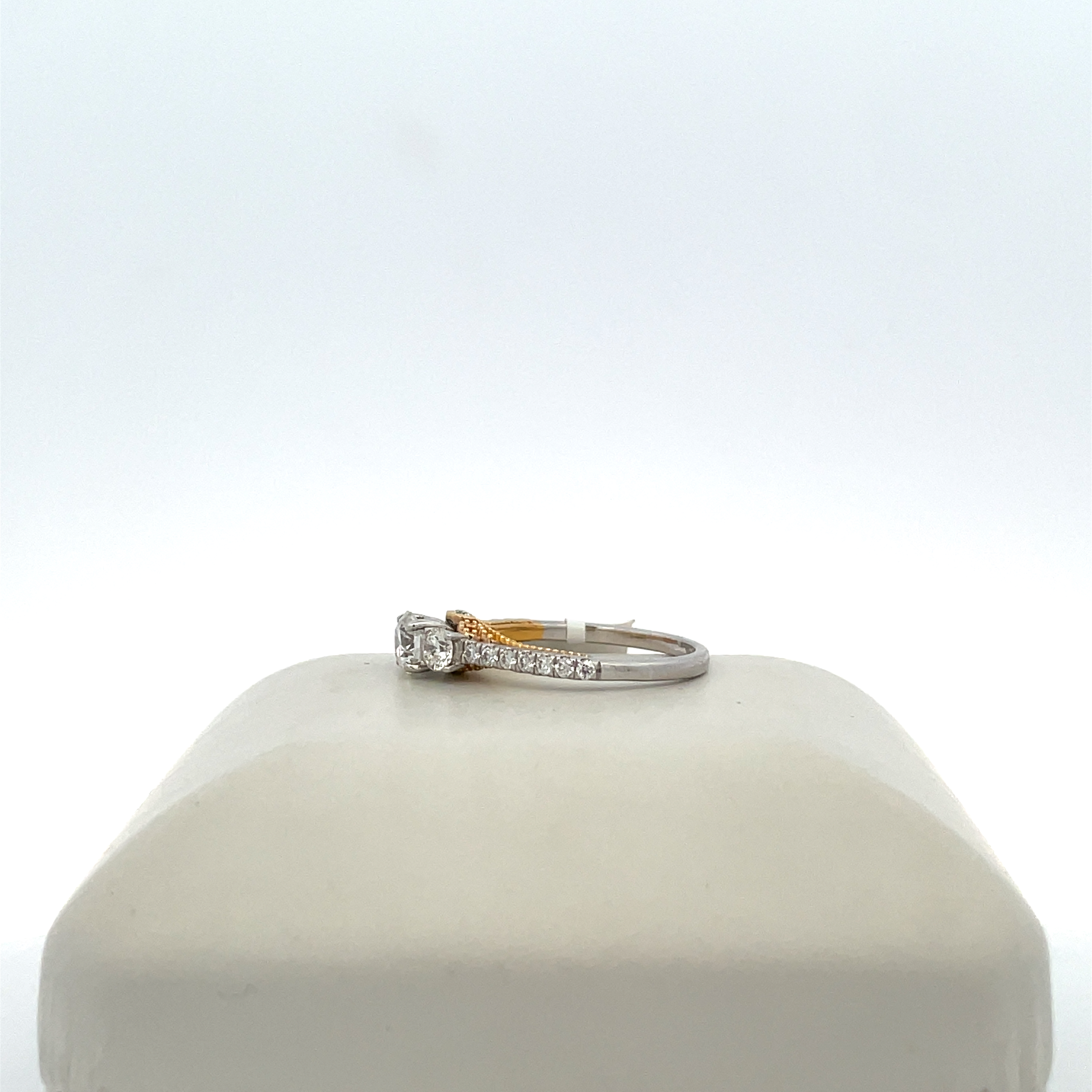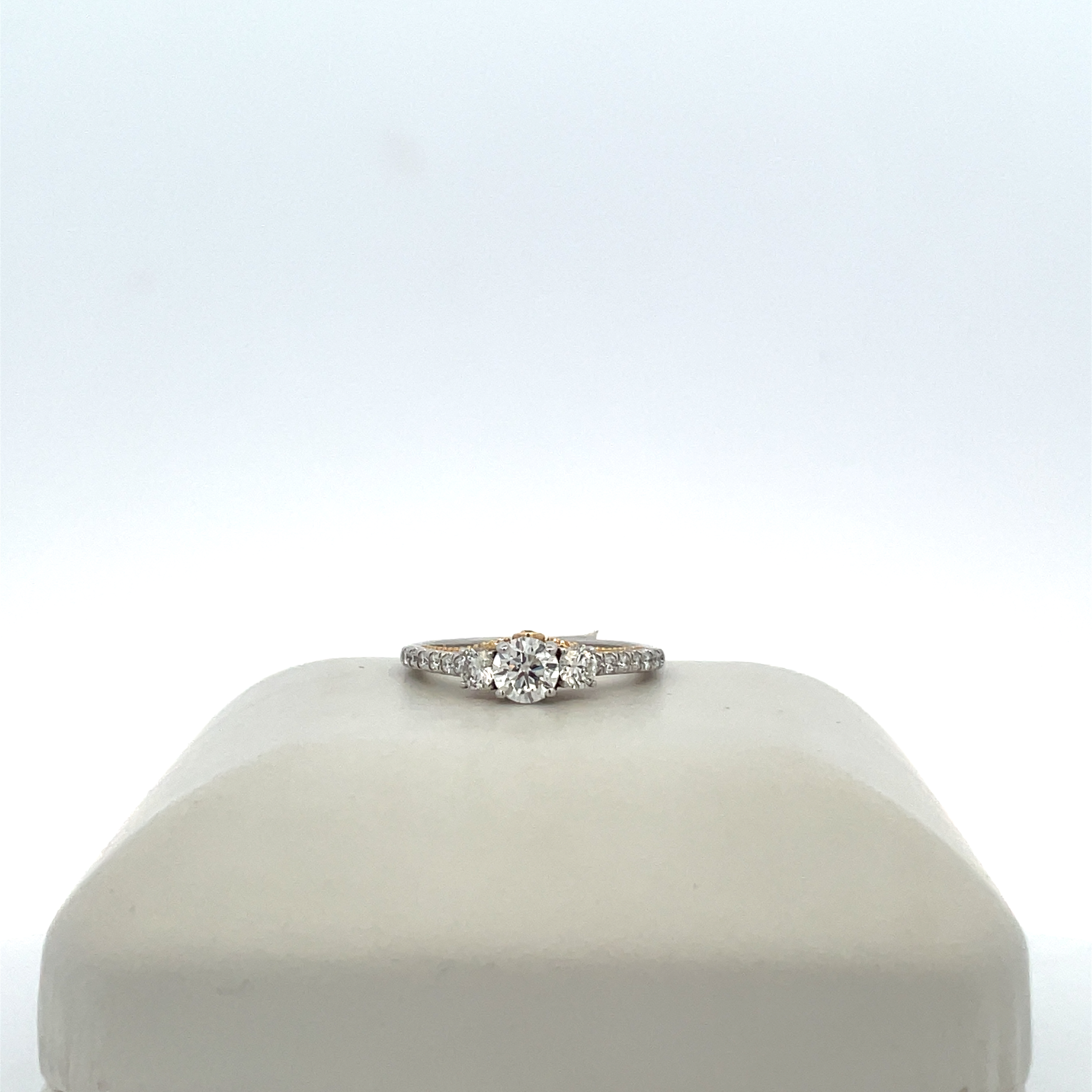 14k White and Yellow Gold Engagement Ring with 3 Round Centers