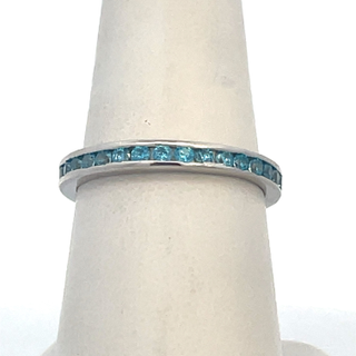 Sterling Silver Blue Topaz CZ Eternity Band Ring