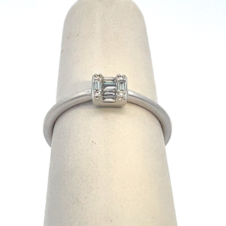 10K White .12CT Round and Baguette Petite Ring