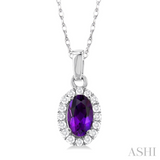 5x3 MM Oval Shape Amethyst and 1/20 Ctw Single Cut Diamond Halo Semi-Precious Pendant with Chain in 10K White Gold (I - J | I1 - I2)
