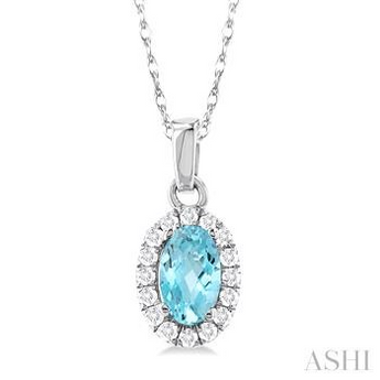 5x3 MM Oval Shape Aquamarine and 1/20 Ctw Single Cut Diamond Halo Semi-Precious Pendant with Chain in 10K White Gold (I - J | I1 - I2)