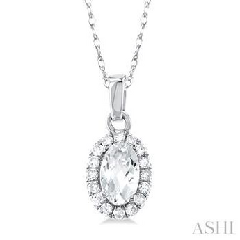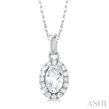 5x3 MM Oval Shape White Topaz and 1/20 Ctw Single Cut Diamond Halo Semi-Precious Pendant with Chain in 10K White Gold (I - J | I1 - I2)