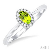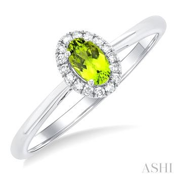5x3 MM Oval Shape Peridot and 1/20 Ctw Single Cut Diamond Halo Semi-Precious Ring in 10K White Gold ( I - J | I1 - I2)