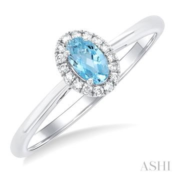 5x3 MM Oval Shape Aquamarine and 1/20 Ctw Single Cut Diamond Halo Semi-Precious Ring in 10K White Gold (I - J | I1 - I2)