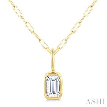 Emerald Shape Bezel Set Paperclip Diamond Fashion Pendant