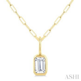 1/5 Ctw Emerald Cut Bezel Set Diamond Fashion Pendant With Paperclip Chain in 10K Yellow Gold
