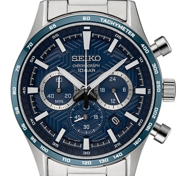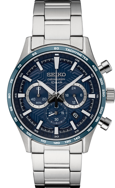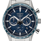 Gents Essentials Stainless Steel Chronograph Seiko Watch with Blue Dial