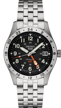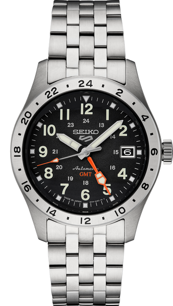 Gents Seiko 5 Sports Stainless Steel Automatic GMT Black Dial