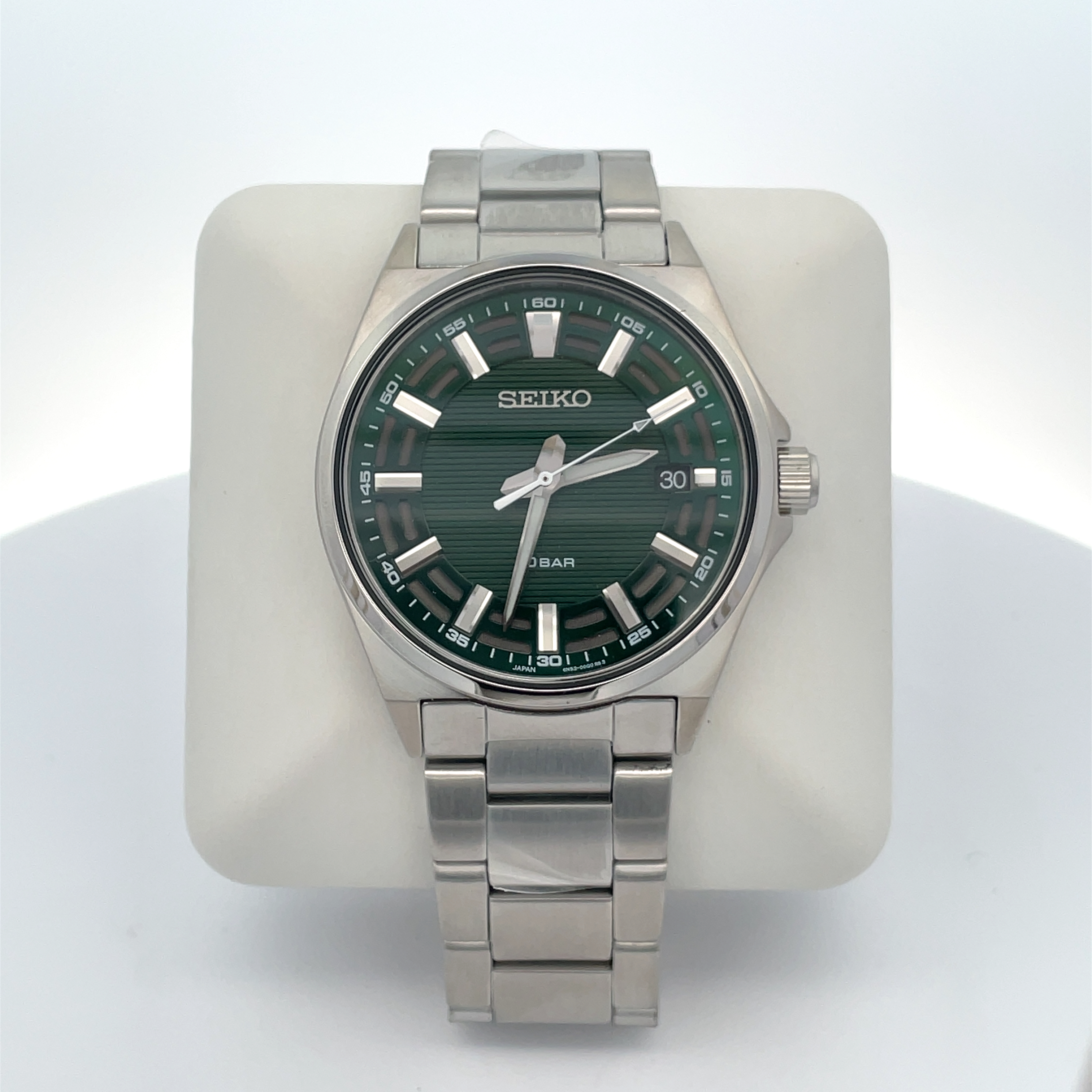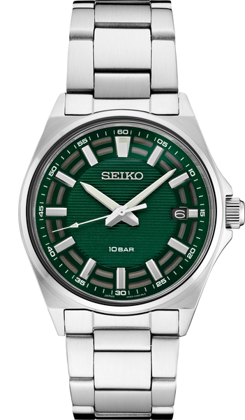 Mens Seiko Essentials Stainless Steel Quartz Watch with Green Dial