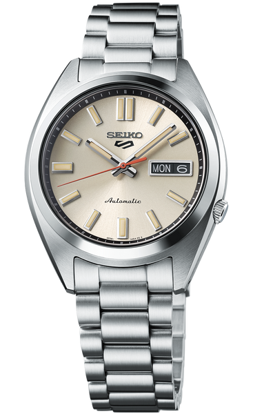 Mens Seiko 5 Sports Midsize Stainless Steel Automatic Watch with Ivory Dial