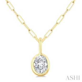 1/5 Ctw Oval Cut Bezel Set Diamond Fashion Pendant With Paperclip Chain in 10K Yellow Gold