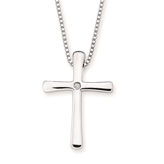 Sterling Silver and Diamond Cross (.01 cttw, 1 diamond, I Color, I1 Clarity) with 18" Box Chain (Adjustable To 16") And Lobster Claw Clasp