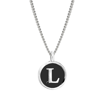 L Black Enamel Initial Pendant Set in Sterling Silver on 18' Curb Chain