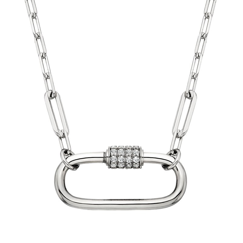 Sterling Silver White Topaz Carabiner Charm Necklace