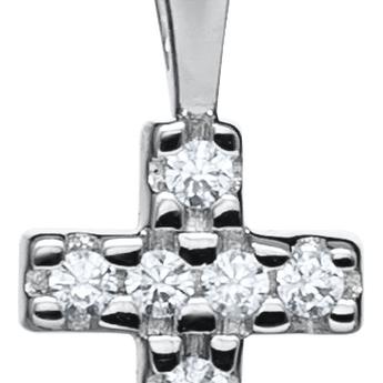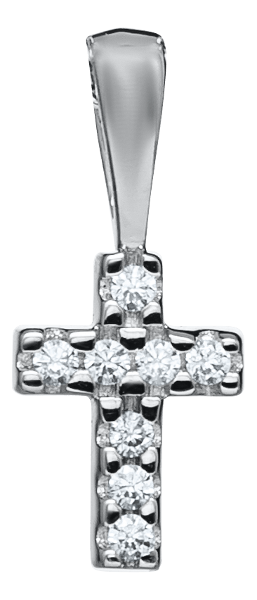 Sterling Silver Cross Pendant With CZ Stones And 15" Chain