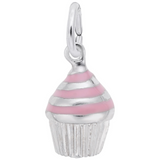 Sterling Silver Swirl Cupcake Charm - Pink